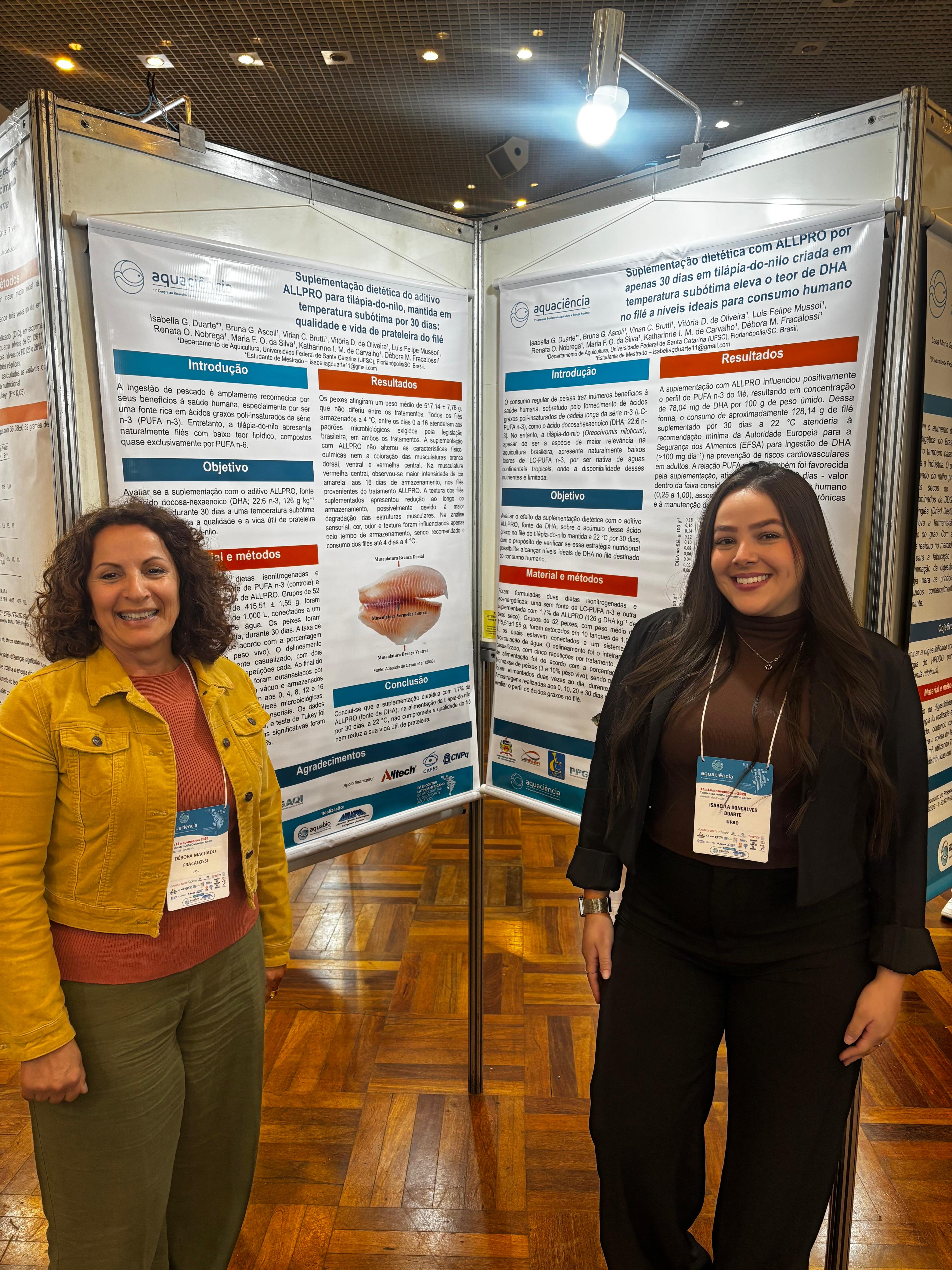Além disso, o LABNUTRI apresentou cinco banners com diferentes trabalhos científicos, destacando linhas de pesquisa em nutrição, sanidade e produção aquícola desenvolvidas no laboratório.